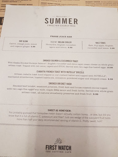 Our group meets at First Watch monthly to keep in touch and enjoy a healthy meal. The service is always fast and friendly. There are numerous healthy options to pick from and the facility is always clean.