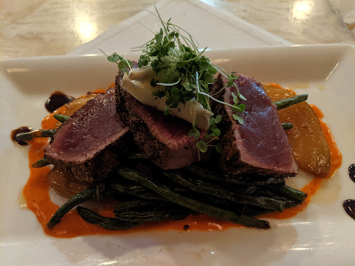 Had both breakfast and dinner here on the lovely patio. The vegetables with Brie dip was unusual and tasty. Tuna burger and fish sandwich were delicious (coming from an east coaster thats high praise!). The fennel dusted scallops for dinner were perfectly cooked and the citrus sauce was soaked up with bread after the scallops were gone.