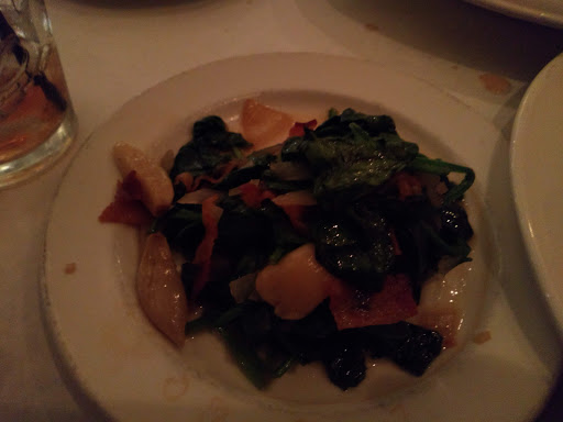 The crab cakes were tasty and my linguine with prawns was okay too. But in general, the food was odd. They kept pushing this arugula, bacon, and potato cake thing as a side -- I like all three of these things individually, but together its not an appetizing mix of ingredients. In terms of service: Appetizers arrived before drinks; we saw other tables getting bread, but no one brought us any until we asked. Overall, service and quality of food did not match price tag.