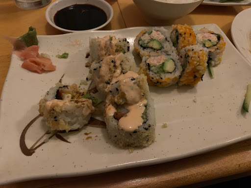 Went there today with my boyfriend. Had chicken teryaki which was okay. My boyfriends course was lacking in any taste whatsoever. Tinas review claims they use real crab in their sushi, but most of the sushi rolls on their menu specifically list imitation Krab as an ingredient. The California roll I ordered may have been with real crab (menu didnt specify it was imitation), but the texture was too strange. It was like the texture of canned tuna. Ive had a lot of sushi, but have never had that texture in a roll. Overall, the sushi was surprisingly bland. Also, the sushi rolls were unnusually enormous and very hard to eat. We spent a lot of money and left disappointed. On the bright side, the service was good. Always had plenty to drink and the server was nice. Would not recommend.