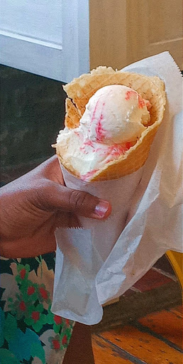 The freshly homemade waffle cones are the way to go. The atmosphere is charming and unique both outside and inside! The employees were helpful and friendly. I cant believe it took me so long to try this place! Delicious!