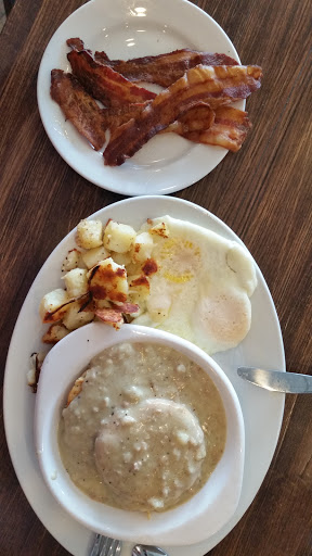 This place has gone downhill. The service is still good, but the menu items changed, namely the muffins. The muffins are no longer the large, fresh baked kind. Theyre much smaller and taste like they came straight out of a freezer - like a Hostess cake. Theyre not very good and they cost approximately 2.50 per muffin. A huge rip off for a low quality pastry. My spouse ordered biscuits and gravy and said the gravy dropped in quality as well. It was bland and yet also sour. The biscuits with the gravy cost 5 dollars. No meat came with it. Sausage, which was good, cost 3.50 for one link. The coffee price rose to 2.70. The coffee was very weak and watered down. I ordered an egg sandwich. When I received it, the entire bottom side of the sandwich, and my plate, was covered in wet egg yolk, so I couldnt eat it like a sandwich. Our server was great, and she deserved the tip she worked for. But the quality of food has dropped and prices have skyrocketed. We paid 30 dollars for what I can surmise is maybe a 15 dollar meal. And thats being generous. We will not be returning to First Watch. Id rather go to IHOP.