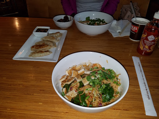 I love this place. The staff are so friendly and constantly check on you to ask if you are OK. An employee could be passing your table on a completely different task and check in with you to see if you need anything. Ive never experienced service like that at any other Noodles location. It does get busy around lunch time, but I think they do a good job managing the crowd. I like to sit outside on the back on nice days BUT they have a huge dumpster right by it so it often smells bad and attracts alot of flys! I wish they could move it... but overall, this is a decent location.