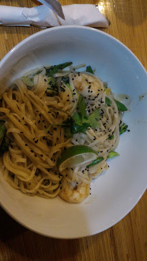 Great place. Atmosphere is great, casual, nice and clean. Great selection of noodle dishes over a wide range of cuisine. Took about 5-10 min to get my food. Food was great, peanut noodles tasted authentic. Food is presented well. Real flatware and dishes. $8.50 for a dish with a meat.