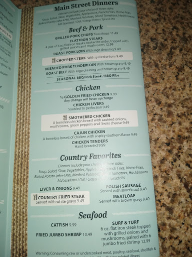 Can vouch for 3 different dinners at Main Street Cafe. The catfish dinner was phenominal, chopped steak delicious, and the golden fried chicken is over the top! I would say this is the best place to eat in this area!