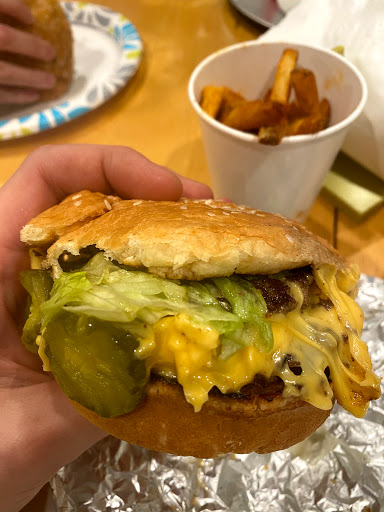 Cheated One of the highlights going to Five Guys is the plenty of fries. The last few times I been to Five Guys I have noticed a significant decrease of fries, if I am going to pay $4.50 for fries then I should get what its worth. If not then I should go somewhere else and pay two dollars less for the same amount or even more fries. All that being said the burger was good.