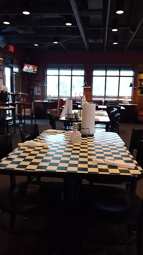 Very slow service, even tho we were the only ones there. Garlic bread wasnt cooked all the way. Wings were cooked too long and pizza had way too much sauce. Very disappointed.