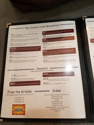 Love there biscuits and gravy .they also have great omelets. Friendly atmosphere and good service. I recommend you go and try country cafe.