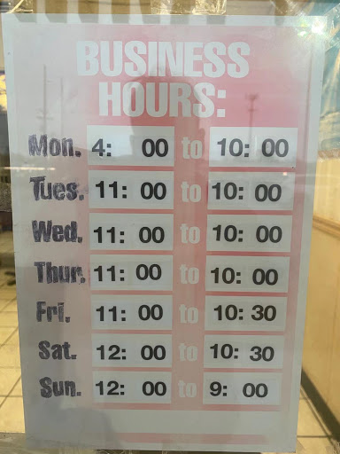 | Working: | 4–10PM 11AM–10PM 11AM–10PM 11AM–10PM 11AM–11PM 11AM–11PM 11:30AM–9PM |