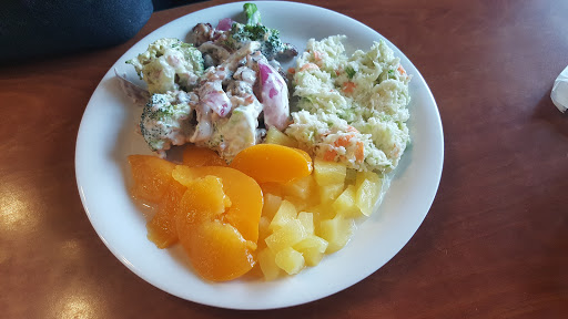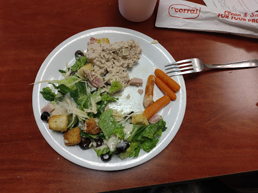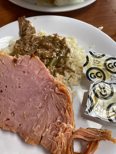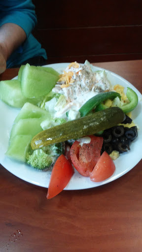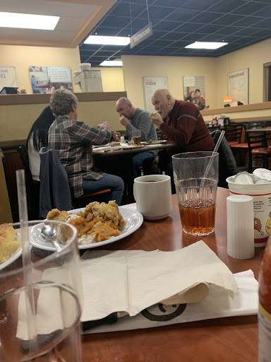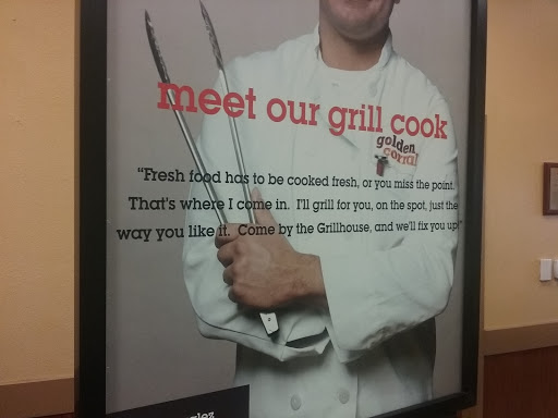 Golden Corral is one of those places you go when no one can agree on something. Everyone can find something they like at Golden Corral! We did the breakfast buffet, and it wasnt terrible. There were some lunch selections out - full salad bar, tacos, baked potatoes - and quite a few breakfast selections. Blueberry pancakes and regular, French toast, waffles, ham, sausage links and patties, bacon, geits, hashbrowns, hash brown casserole - standard breakfast fare. Their dessert bar had its usual fare - pie, cake, fudge, and the chocolate fountain. Its not five star cuisine, so if thats what youre looking for, this is not the place. But its clean, the food is decent, and its not super expensive.