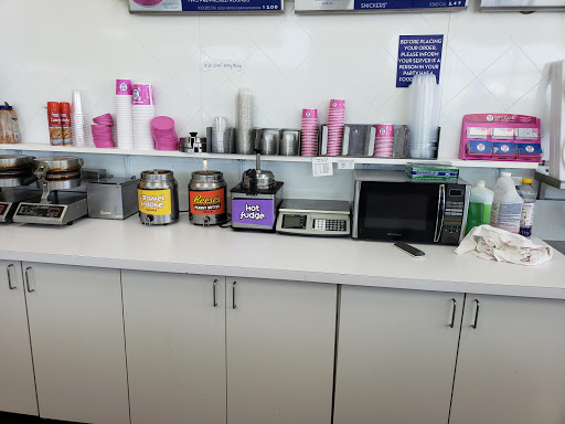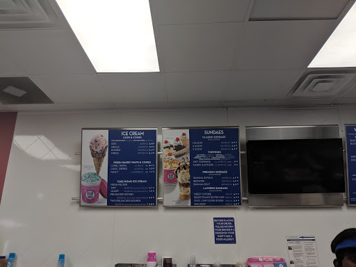 I tried this newer location recently in the later evening. 3 workers there. When the people ahead of me were finished they left and I was standing alone with no one else in the store. The 3 workers were behind the counter talking and IGNORING me. Eventually they looked up and stared at me blankly. I asked if they were done talking and ready to take my order which gave all of them an attitude. I ordered my ice cream and asked for a sugar cone. They put it on one of those crappy cheap cones and I repeated that I wanted a sugar cone. They said they were out and I told them I didnt want the other kind. The oldest worker said I could have a waffle cone instead. I reluctantly had to accept it, but it makes me angry that a staple like a sugar cone should not have the correct amount ordered. Also, this place never has any pre-packaged ice cream in stock in the flavors I want (chocolate mint - another standard) and I have to wait for entirely too long for them to hand scoop it. Slow service and too many of these younger workers have poor work ethic.