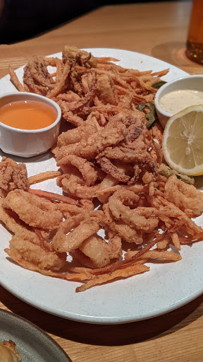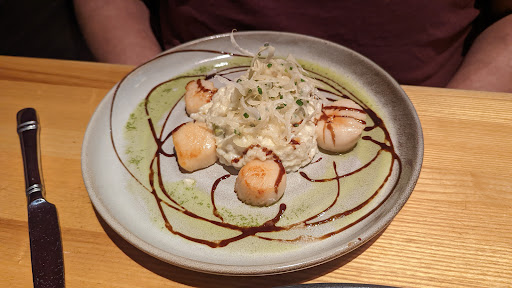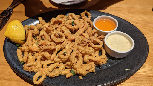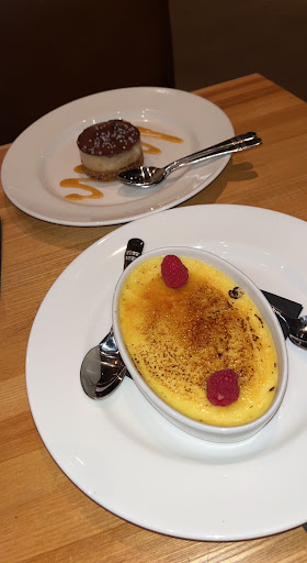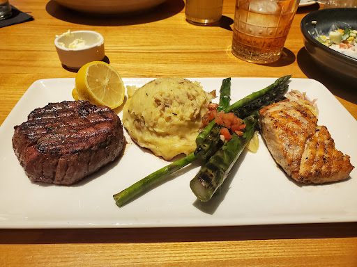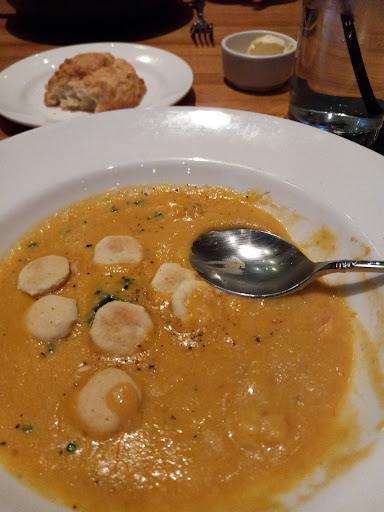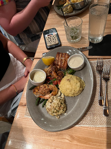 I ordered the Seafood Mixed Grill and the Pardon My French. This is the first place where I have ever been served MOIST scallops...these were not dried out! Crab salad was delicious. The shrimp were perfectly grilled with just a bit of zip, and were not dried out like some grilled shrimps. The salmon was also moist and almost flaked just by looking at it! Im not a big salmon fan but I would eat this salmon again in a heartbeat. The potatoes and grilled asparagus were an excellent combination with this dish. A mild sauce as well as a spicy sauce come with this entree; both are very good but I opted for the mild. Even the biscuits and honey butter before the meal are melt-in-your-mouth amazing. Pardon My French is a sweet yet somewhat tangy martini, pleasant to all the senses and perfect for someone who prefers sweet over dry. It paired very well with my entree. Go alone and fall in love with the food, or take your loved one and let them fall in love with you all over again--you cant beat the food or the mood in this place. My dinner and two martinis brought my bill to nearly $70 plus tip, so its pricey but expect to get what you paid for...excellent food, service and atmosphere.