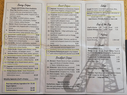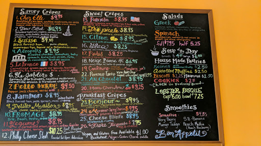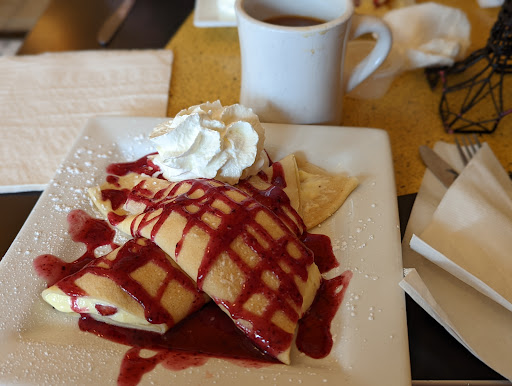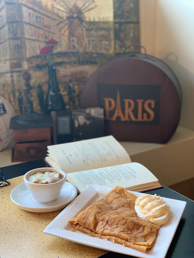 First time there, so we really wanted to like the place. We were really disappointed instead. The women who took our order was fun, she was the only bright spot. The lattes were good, but lukewarm. The Suisse crepe and the Bon Jour crepe had hardly any ingredients. The temperature of the crepes seemed as if they had been sitting on the counter for a while. We spent $23 and dont believe we got our value for the money spent. Dont sit near the back right corner, otherwise youll have employees going in and out getting paper supplies letting the cold air in and door slamming. By the way, since I couldnt help but see the storage room, you should make room on the shelves for the paper supplies and get them off the floor. As we were leaving we looked at everyone elses food and it looked so much better. Not sure why our food experience was so different. The place is attractive and the art is a nice touch.