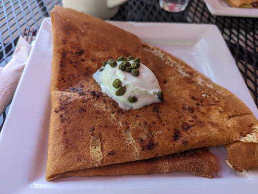 Really cozy place to eat, especially on the Sunday morning. They have some nice outdoor seating and a large indoor area too. There is a shelf of board games to entertain yourself while you wait. The crepes were good. The Monsieur was a lot of food and was very filling. The Glace was a sweet, straightforward crepe. It was "some assembly required", not put together like the Monsieur. Overall, the food was tasty and seemed like a popular place and it was a good experience.