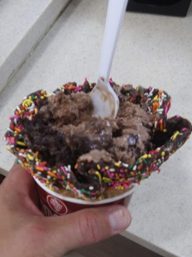 Today my girlfriend and I came in to get some ice cream and was disappointed with their service. their where two people working a young lady and a man, the young lady was taking the order of the person in front of me and they had asked for a cake batter like it the man took my order and I asked for a love it cake batter ice cream with sprinkles mixed in when he had grabbed the ice cream the portion size was extremely to small I mean the young lady practically gave the person infront of me more and they got a like it. so when the man put it in the cup it only reached half way so since the amount obviously was to small he put in another small portion and did not bother to mix in the sprinkles and it wasnt even busy for him to do such a horrible job it didnt take so much to mix in the sprinkles I basically had the bottom with sprinkles and the top without. So then he took my girlfriends order and she wanted it in a cone but didnt even ask he just put it an a cup. I dont know if he was new and didnt know the portion sizes or he just doesnt like his job so he puts out a horrible customer service either way it was disappointing!