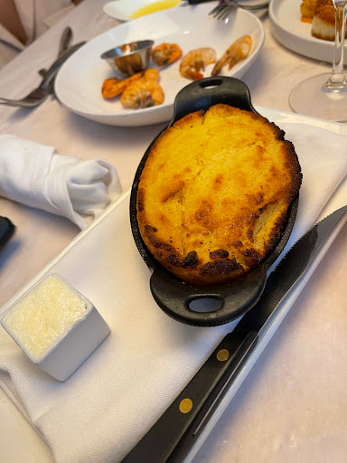 My husband and I recently visited the highly esteemed Jax Fish House on a busy Saturday night in Kansas City, MO. The service was absolutely excellent. The staff checked on my table several times before, during, and even after our meal to ensure that we were fully satisfied. Our waitress was very knowledgeable about the menu and had plenty of suggestions. Appetizer: We had the steamed mussels in roasted tomato sauce and chorizo. There was a well-orchestrated explosion of flavor in the dish. Customers also have the choice to add pasta to make it a complete dish. The sauce is very rich and I believe WHEN I return, I have this. We also had the hushpuppies which had pimento cheese inside with a sweet red pepper relish as a dip. Again, absolutely delicious and a new take on an old favorite. Dinner: I had the Hot Messy Shrimp. This bowl is comprised of (from bottom to top) rancho gordo beans in broth, andouille sausage, grilled red potatoes, and a side of “comeback sauce” for your four large shrimp. Very good and different. I want to compare it to a gumbo, but it is more than that. It is also NOT spicy! While we enjoyed our dinner, we ran into a little issue. I will say that this restaurant really cares about their customers. (The manager and the chef came to the table.) Their recovery was great and is one of the reasons I have no reservations about returning. The portions weren’t as large as I would expect for the price, but I don’t eat at restaurants like this one often. I do believe that I got exactly what I paid for and more. The food here is not ordinary or something you can make at home and I love that! We will be back. Thank you for making our anniversary night amazing!