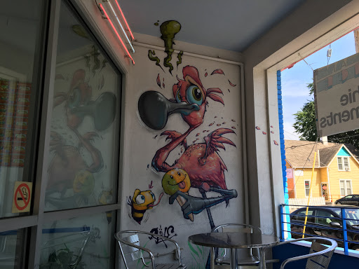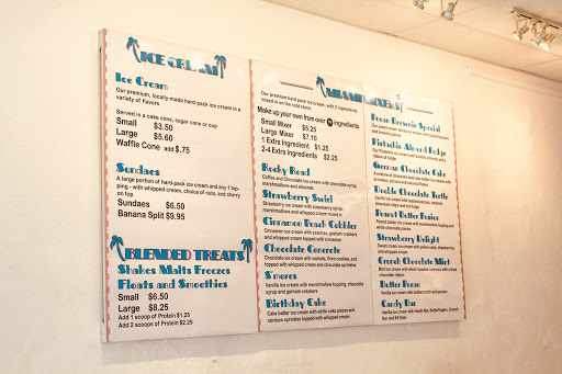 Easy to see and walk in to. It is inviting with a great vibe and music. Awesome Selection. Ice cream is cold stone mixed. Shaved ice is super flavored and enjoyable. Very Clean.