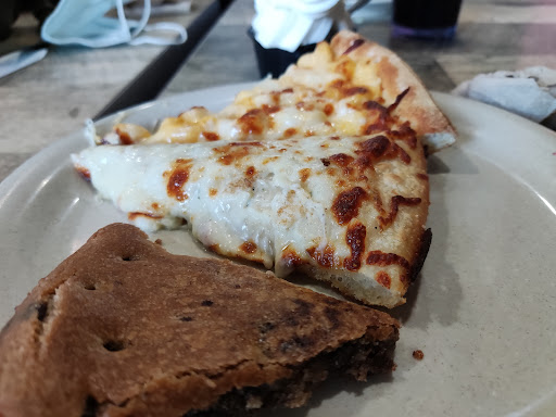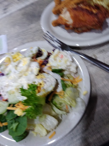 Didnt feel like making lunch so I headed here by myself around 1:30 since its close and Ive never been. Lunch with a drink was just over $10. I had to ask if I should seat myself but the hostess/cashier did let me know I could request a pizza I didnt see. There are a few different rooms and areas and the place had a few other late lunchers, but plenty of tables. I got my own drink and then checked out the offerings. The buffet is small and no-frills. The pizza station had about 6-8 pies most were plain cheese and some strange combinations with what appeared to be a pan style and thin crust. The fried chicken station had biscuits, stuffing, mashed potatoes, gravy, carrots, corn and green beans. The salad bar was sad. Basic and not many selections. Only ranch dressing with some packets of Kens on the side. The pizza was fine, not really good but it was okay. The chicken was too salty for me but the sides were okay. The biscuits were buttery and really good. I did notice the Christian pop when I went to wash my hands. I hadnt noticed it at first, but once I did, it was just weird. Not off putting but odd. Glad I checked it out. In theory it sounded good but wont be back. Do have to say service was quick. Plates were cleared each time I got up and I never saw the person.