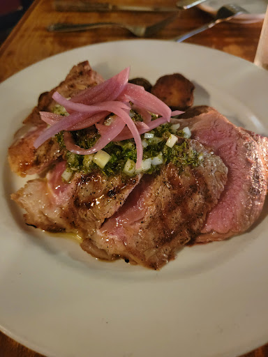 Beef pot pie was delicious. Light flaky crust - good for my waistline but I would prefer a slightly heavier pie crust. Roasted chicken also delicious. Very good wine list and service was great. Reservations are required if you want a table. Didnt know this but we were able to eat at the small bar. Had quite a long wait to order and then a longer wait for our dinner, but the quality of the food made up for it. They would greatly benefit from a larger space.