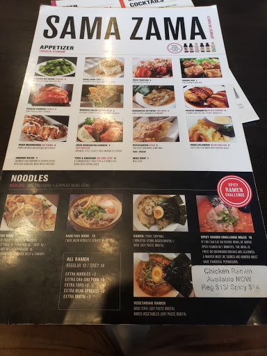 The ramen is amazing. But i placed a to go order and they charged me 15$ for a 10$ bowl of ramen. Really?? An extra 5 bucks just to put it in a plastic container?? Total bs. But, i still placed my order. I get there at 9:37 and Im told they didnt put my order in because i asked about the price. Seriously?? Then the female (short and squat, kinda butch looking), looks me straight in the face and tells me that the kitchen is closed. At 9:37?? Ok. Never will i ever going back to Sama Zama. Never will i ever recommend Sama Zama. Never will i ever utter another word of praise for Sama Zama. Never ever will Sama Zama get any of my money nor any of my associates.