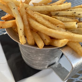 I visited here for quick drink with my girls. Rooftop is really nice. It was little chilly when i visited but i think it would be perfect if it was little warmer. They have little fire in the middle of the table so it adds to the mood. We ordered couple of food for quick bite and drinks. Drinks were good and food was okay (wings were best out of others we ordered). They do get very crowded when weather is nice(something expected with nice rooftop) but i think this is nice place to hang out with friends for drinks. Five stars for the rooftop location but foodwise- 3 stars.