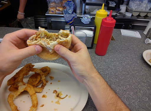 What can I say about Town Topic that hasnt been said, good or bad for that matter. Well, how about this, dont know how many people have tried this, I picked this tip up a while back. Have you tried their shakes? Yeah, theyre damn tasty. What about their pie? Yep all the time I bet. But have you had them put a slice of the pie in the shake? Now thats where its at. Yes, just pick a piece of pie, now chose a shake flavor accordingly and have them put the slice of pie in there and blend it up. Its ghetto fabulous, all the silky ice cream with pieces of strawberry, or coconut or what have you, and the chunks of flaky, buttery pie crust, ohhhh yeah. Ive been here more times than I can count, probably because I was stinky drunk for a good portion of those times. One of my only complaints that I can think of is the waiting and/or no room at the counter. But, what are you going to do? That, and the pinball machine is always busy when Im there. Nothing, thats what. Youre going to shut your hole and wait for your chance to pony on up and get you a few little beefy, greasy, tender, disks of heaven. That, and a one of those pie-shakey things that I mentioned above.