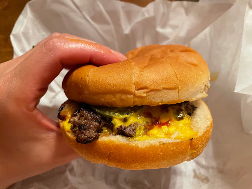 Were new to the area, saw all the good reviews, and decided to go here for lunch. When we got out of the car outside, the smell was wonderful! We thought we were going to be in for a good time. We were excited. Walking inside, it was much smaller than expected, but thought it was kind of cool and added to the overall ambience of the place - a classic "hole in the wall". We were excited. It was busy, we ordered our food, we were excited. Then we had to try to find a spot to stand, in hopes of eventually finding a spot to sit and eat. All the good vibes started to dissipate at this point. Because of the tight quarters and what turned in to a VERY long wait, we got to witness a lot of things that caused the rosey-tinted lenses we had originally been looking through to eventually fade away, leaving us staring at the nasty, cold hard truth of the dung-heap we were in. We happened to be standing right by the grill, and got to watch several other orders be prepared while we waited (including several orders that were placed AFTER ours). What we witnessed was nothing short of absolutely horrendous food handling practices and a health code inspectors worst nightmares. One spatula for all the food on the grill. The chef wearing one pair of gloves the whole time, touching raw ground beef patties, raw bacon strips, hot dogs, fries, the freezer handle, food bags, onions, ketchup bottles, etc. Never once even thinking about the raw meat juice being spread all over everything as he went. Grabbing buns off of the grill with ground beef juice gloves. Wrapping burgers up in paper with ground beef juice gloves. Wiping sweat off his face with ground beef juice gloves. Handling to-go bags with ground beef juice gloves. You do realize the purpose of the gloves is to touch the meat, then dispose of them, right? The gloves arent to protect your hands - theyre to protect the consumer from the very juices you went spreading around on almost quite literally everything. We waited FOREVER. At least 25-30 mins for our food, so we got to witness a lot of other orders being made. We finally found seats to sit at, which happened to be right in front of the grill, providing a continuous front row seat to the "E. coli Show". We waited and waited and waited for our food, seeing several other later-placed orders pass us up. Finally, 3 out of 4 of our plates were served (plated, of course, by the ground beef juice gloves), and the 4th plates food was just being put on the grill, and we were told curtly by one of the employees, "Well it will just be another five minutes. Do you want to wait or do you just not want it?" Yeah, that fourth person was really just hoping to sit there and watch the rest of us eat anyway. The first 3 of us got cheeseburgers, fries, and onion rings. The hamburgers were burnt - like black burnt. Hard and dry. The buns were crispy and burnt. I havent ever had a burger as dry as this. Terrible. Like biting in to a dry and crispy cooked cow pie. And a very small piece of burnt cow pie at that. The fries were average at best, your typical straight from the freezer to the fryer. The onion rings, I will admit, were decent, though also from the freezer. Finally the 4th plate was served, and it was a very basic egg sandwich. As in, a couple of cooked eggs placed between 2 pieces of bread. All, of course, prepared and plated by Mr. Ground beef juice gloves. We left almost in amazement of the totally disappointing experience we had. Completely dumbfounded at how this place is such a classic icon. But needless to say, we will be reporting them to the Health Dept. because its obvious that it is only a matter of time before something really bad happens to someone eating here. If the food had been good, I could see myself saying, "Well that place was dirty as all get out. But hey, the food was great! Somehow theyre pulling it off without killing someone!" But I cant say that. Im left thinking, "Well that place was disgusting, cramped, and dirty as all get out. A total waste of our money and time, and potentially our good health."