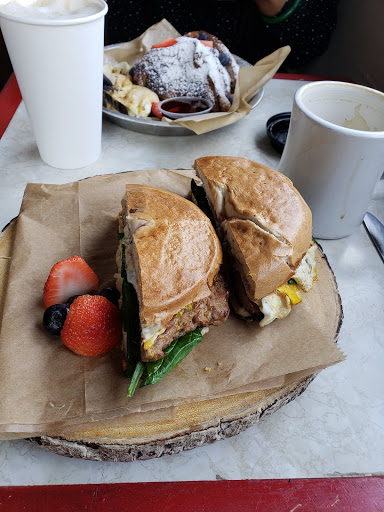 Enjoying the bacon, egg, and cheese on raisin bread! Breakfast menu is small, but they have a good selection of devices that are available too. I look forward to trying them! They also have some grab & go options which look delicious. I hope they succeed here, as we need places like this in the area.
