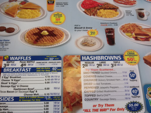 Pretty standard Waffle House offerings. Perhaps a bit cleaner and quicker than most. Check out the hash brown topping options!