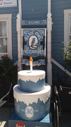 Ive been to the Blue Owl off and on over the years. I made reservations to take my mother-in-law for mothers day 2010. They had a smaller than ordinary menu that day with larger than ordinary prices (which are pretty high to begin with). We ordered fried chicken which was so over done there really wasnt any "chicken" under the fried "shell". I cant see how this even got past the person putting it on the plate. We normally dont complain but after paying so much we politely brought it to the attention of the owner. She offered to make more for us. After waiting 30 minutes for our food with our two little children, no thanks we said. We didnt ask for our meal free, we didnt ask for anything really. What we expected were the chicken dinners to be taken off the bill (out of our party of 5 that would have been 2 meals). Instead we got 2 free slices of pie, which I had the delight of ordering from the rude ladies at the pie counter. Then when we left and walked around the side of the building we see a tent canopy set up, with a young (early twenty something) guy outside breading and cooking the chicken (which was flavorless besides being over done). And that was that for us. Never Again!!