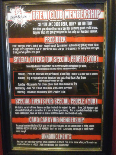 This place is awesome! My wife and I stopped in late on a Monday night. The man behind the bar greeted us warmly regardless of the hour and took great care of us all night. He was very knowledgeable about the beer they had and seemed to really enjoy what he does for a living. He stopped by often with samples of their beers as well as some of his own creations (most were delicious!!). While the menu doesnt boast the lengthiness of a Chilis or 54th ST menu, I was still very satisfied with the love and attention to detail that went into every dish they brought out. Again, the love of ones job really shines through in this area. Towards the end of our meal, a man who Im assuming was either a manager or owner stopped by (guy with a beard). He asked us if we were satisfied with our experience and very wholeheartedly accepted my VERY small criticism about one thing. Both employees I met face to face seemed very eager to please and create a good experience. I know this review is lengthy and if youve read this far, STOP READING AND GO HERE!!! I seriously cannot give this place enough kudos. I was there Monday and already have plans to go back Saturday for lunch. Well done Rock and Run. Youve got my business!!!