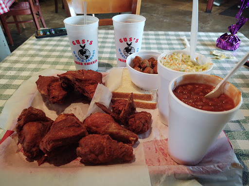 This was one of the worst experiences with fried chicken I have ever had. 1st off I paid just short of $25 for eight pieces of chicken ( 1 whole chicken ). The cashier told me when I said that it was my first time that the chicken is really good and Ill love it. It took almost 30 minutes to get my order, when I got it, it was presented to me in a brown paper bag with 2 slices of bread. And then placed in a plastic bag. I was told to not close the bag in order to keep the chicken crispy, I complied with this request (order), then drove home. Once I arrived I was prepared to eat my Guss chicken only find out that you will see from the picture the chicken was burnt and cooked in old overused cooking oil. I have written this to say that I will never have Guss World Famous Fried Chicken again. WORST CHICKEN EVER!!!!!!!!!!!!!!!!!