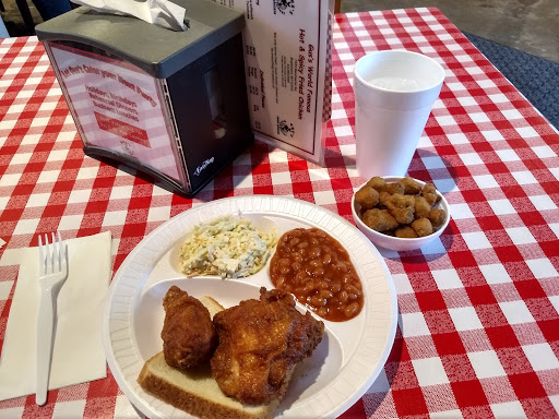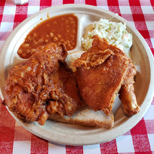 After my first time here I went back again the next day. I went around 11am to dine in. Chicken isnt as spicy as I thought it was going to be. Chicken is cooked to order so it comes to your table piping hot. Sides are good but the greens taste like they are from a can. Not a long wait at all. Chicken is cooked in peanut oil. ***UPDATE ***Ive been here a dozen times now.... Some servers are more friendly and professional than others. Theres 2 servers I will not let serve me. One because as soon as you put tip money (15%) down (while youre still sitting, talking and eating) she will come grab the tip and receipt and never come back to the table. The other because she moves slow and doesnt treat each guest equally. I cant give it 5 stars because food nor service isnt consistent. Slaw is only good half the time. Half the time its watered down...tastless. Sometimes chicken is to crispy. Side item portion sizes arent the same. Okra always comes out over fried (not getting that ever again lol). Seems like weekend food is horrible. Food taste better during the week.