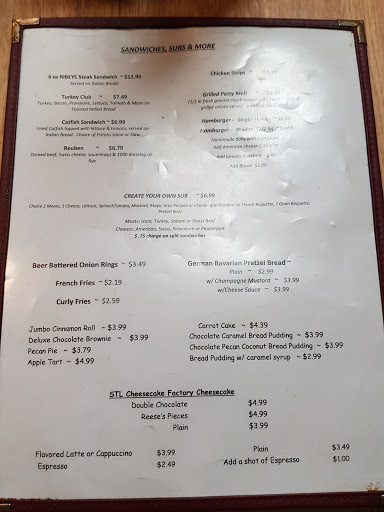 Recently had a really good double bacon burger and lemon raspberry sponge cheese cake. The burger was just like you would make from home with 80/20 beef, juicy and not premade patties. They have wraps and build to suit subs, the menu is very diverse and everything sounds good! Food for all I would say. They also serve breakfast, daily specials, soup specials, claimed best chilly (which I will try in the fall-winter) and desert pies and cakes. They have beer and wine by the bottles that you can also purchase by the 6 or 12 pack. For MKT trail folks they have snacks, bottled water, Gatorade, etc. The folks dinning are a mix of MKT cyclists, motorcyclist, locals, and winery folks. Its a small building and not suited for folks that are easily offended by appearances. For those I say eat the food and youll forget what the place looks like!