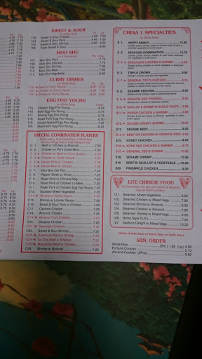 I LOVE China One. Let me tell you... The crab rangoons are the best Ive had! They have some great combination plates and give generous portions. Everytime I come, the guy at the front is always very welcoming and knows my order. Do yourself a favor and stop here!