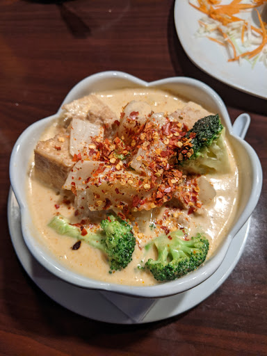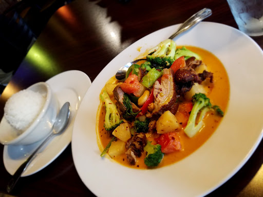 Ok, seriously, if you like curry, go here. Service is a little slow but not unreasonable, and they are friendly. Prices are reasonable, decor is nice, it is clean, including the bathrooms. Theres multiple options for curry and some pan-Asian fare. This is better food at a better price than LuLus with better parking. Both the red and green curries are great with ample portions. The drawback is that its across the river and you wont notice it unless youre looking for it, so look for it.