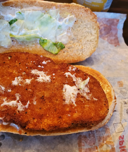 I got the original chicken sandwich and it tasted like a salty freezer-burned piece of rubber. This is my usual sandwich at burger king so it must be this location because all of the other ones Ive had were fine. It was so salty and so dry I had to take a gulp of water with each bite. I was in a rush back to work from my lunch break so it was either just eat that or go hungry. I was seriously contemplating the latter.