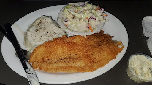 Food was what you would expect from a family restaurant and it was a small menu, but we enjoyed everything...mushrooms, chicken strips, salad, club sandwich, and fries. I like eating at mom and pop places instead of chains and would recommend this one. Service was very friendly and attentive. And you cant beat the prices...6 of us are for less than $40.