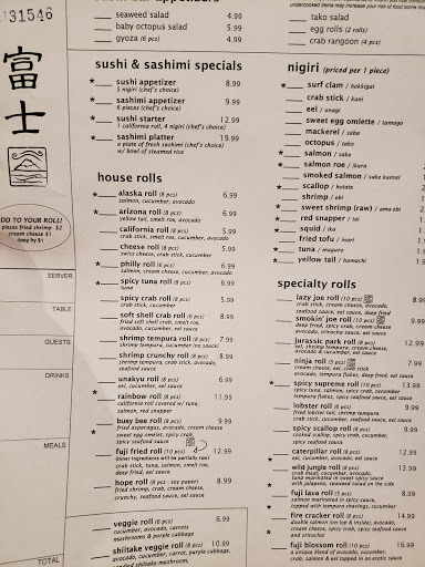 We Love Fuji! Our families favorite place to eat. Lazy joe roll for sushi. Crab rangoon is amazing. The Volcano adult beverage is amazing. My kids love the Japanese flavored soda. May is a great server and Joses cooking is perfect everytime.