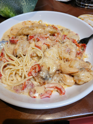 130 mile round trip for a birthday dinner for my better half that was tantamount to a candidate for a reality TV show restaurant rescue. I had never eaten at an Olive Garden but the misses had and for 11 years I kept hearing from her about how wonderful it was, well I think a fast food fish sandwich would have been better. I had a fettuccini alfredo with grilled chicken that had a fantastic sauce flavor and the pasta was cooked to perfection, thus the 2 star rating. Now for the down side, the sauce was very dry and the chicken was overcooked on the outside causing it to have a splintery bark like texture to it. The birthday girl ordered spaghetti with meatballs in a red sauce, it came with two nice sized meatballs that had a consistency similar to that of a canned meat and a taste that would make "Chef Boyardee" a Five star Michelin chef. Moving on to the service, our server must have been dehydrated because he had that pastie milky thing going on his lips that was very noticeable when he spoke so maintaining an appetite was not easy, when it came time to order dessert which we decided to take home because the misses did manage to get full on salad and breadsticks and I on the same along with the pasta I had ordered, like I said, the sauce tasted great and the pasta was cooked to perfection, with that and because of the both of us being on disability I had used every bit of the money we had left for the month after paying our bills in order to take her to the place she spoke of so highly so I didnt have enough left for a dollar menu sandwich at a drive through. Anyway, back to the ordering of dessert, I had decided to order an item that came in three little glasses and asked they be put in something else (I was not buying the glasses after all) but our server said he didnt think he could do that so I selected another item and he decided to talk me out of that item, I insisted at that point even though I knew the scoop of ice cream on top of that dish would be melted after the 65 mile trip back home, funny thing is, even though it was melted it was the best part of that meal other than the company I was with, she was great and handled the entire night with poise and grace. Note: We also brought home the spaghetti with meatballs because we wanted to show our friends how bad it was and considering I had cut the meatballs in 4 pieces each for the misses, she ate 2 and I 1 so there was plenty left for providing taste samples. Although we were not very greatfull I still left a gratuity because I just dont feel right not doing so.