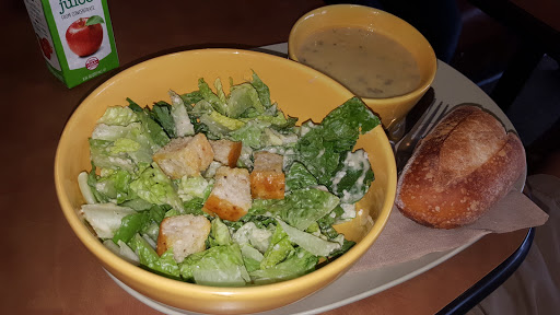 Everytime I go there which is at least once a week, the employees are really friendly and generous. They have a wide variety of food and very interesting things to eat. I love the frontega chicken sandwich, french onion soup, mac and chz is GREAT, broccoli cheddar soup is one of the best, rich shortbread cookies (as long as you dont get an undercooked one) , cheese, cherry and apple pastries and the mediteranian veggie sandwich is great too and probably great on croissant bread because the tomato basil bread that it comes on has cinnamon and sugar on it. They also have filtered water for free by the fountain drinks. They have a great variety. No matter what I am in the mood to eat, they have something that will hit the spot! The you pick two option is the bomb!!! All the locations are about as good as this one.