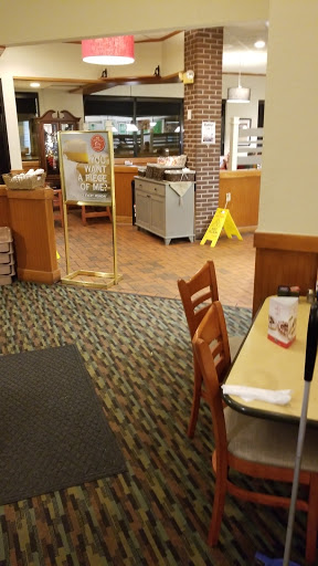 Full Disclosure: I worked for Perkins in the mid-90s in Southwest Ohio, so I am at least somewhat familiar with the chain, menu staple items and service standards. This Perkins is located just across the street from the Bass Pro Shop, so finding it isnt hard. We came by on a Saturday morning, around 11 on a break from driving Route 66. After being seated, we waited about 10 minutes for our server to show up who just said hey, what can I get you. We ordered and a short time later, our meals were served. I give the cook props for knowing how to cook an over-medium egg, even waffle house screws that up sometimes. That said, the eggs he used must not have been fresh as I and my wife (who also ordered eggs) were stomach-wrenching sick that entire evening (we had nothing else to eat that day). Aside from the bad eggs, the bacon was little more than fat strips -- yes, thats bacon is, but this was almost pure fat, and the potatoes were tooth-breaking hard. My wifes omelette was runny and had very little toppings.
