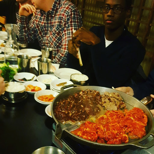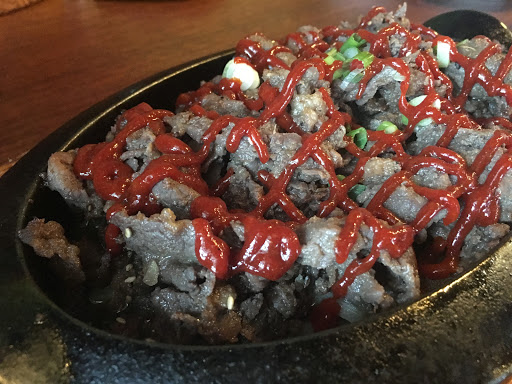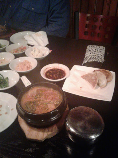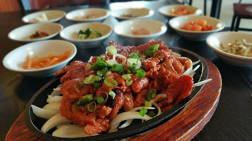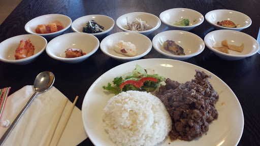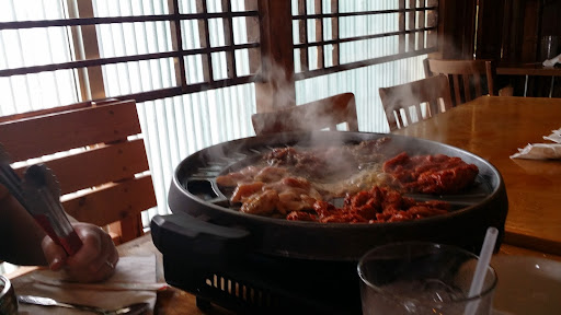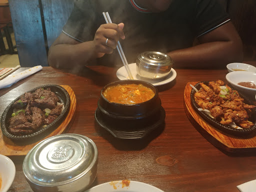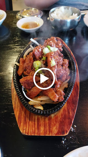 Staying at the Crowne Plaza down the street, and decided to try it out @2p for lunch. Walked in by myself, and was seated and attended to promptly. Service was fine, as I was 1 of maybe 3 tables with people. I thought the prices were fair, they even have lunch specials starting at $8.95. Good selection of all the favorites. I had the dukkboggi, and spicy pork combo with tofu "chigae". Everything was amazing! Came with about 10 side dishes and a small bowl of rice. The taste was incredible. They did not cook it in front of me, but that is usually the case when its only 1 person. Also, I didnt see any holes in the tables so maybe its a portable grill they bring out?? Didnt care, food was delicious! Would definitely repeat! Very authentic taste/ style. I would know, I lived in Korea for 13 years. Check it out if you like Korean. Also, other reviews mention to go in with a Korean. Wouldnt hurt but didnt seem very necessary. Waitress seemed shy (like every other Korean girl) so maybe that was their problem. Idk. I enjoyed it very much! Menu has English.