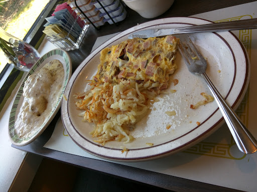 From the looks outside it sort of looks a little run down but as you enter the restaurant there is friendly staff that welcomes you to this cozy place. Often seating is "seat yourself" but its so busy you end up waiting for a table. The menu has a variety of American food to choose from. Its classic diner fare. At first look all the prices seem outdated since they are so low and you may expect to get simply portions, but anything that weve ordered has always filled us up and left some for take home. We dont live close and when we make trips here we always stop in. Every time we have stopped in its only been for breakfast and can say the skillets are great as well as the ham and eggs. My wife and I always get the pancakes instead of toast because they are so fluffy and buttery. In our opinion this great spot for a quick breakfast. If you have a chance give it a try and dont be deceived by the looks from outside.