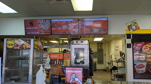 Pizza isnt great, but cheap and fast, and breadsticks are awesome. Super quick, a large pizza for $5 bucks while you wait.. hard to beat when youre super hungry, dont want to spend $$$, or having a bunch of people over. Beware, this pizza is terrible the next day-- throw it out, just not worth reheating.