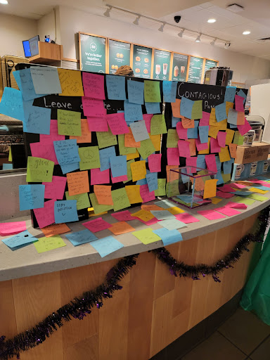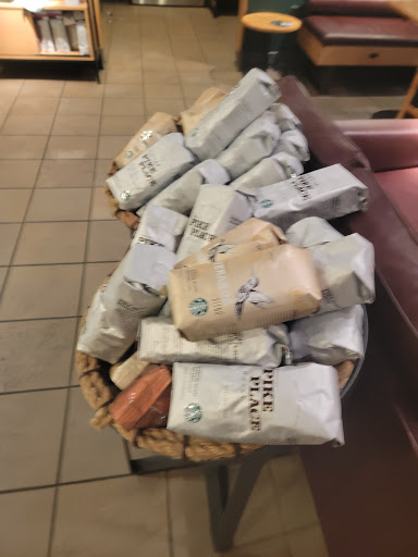 The parking lot is the most horribly designed one I have ever seen. The drive thru gets up to 15 cars deep which wraps around the building. The cars block off all the parking spots, so you cant get in or out unless someone is kind enough to let you back out. Sometimes there is no more room in the drive thru line because its so long you would be blocking traffic on 5th street if you got in line. I never order anything complicated, but they always seem to get it right. One manager was even kind enough to comp my food because of the wait time in the drive thru. Once I left my debit card there and they kept it for me without issue. HOWEVER, you will spend a minimum of 20 minutes waiting for your drink. Even if they are empty. I am standing there and waiting for my drink and half the employees are standing around vacuuming up coffee beans and wiping down counters instead of making a simple drink! If you are ordering online, do not believe the wait time. Use this formula instead. Take the minimum wait time, multiply it by four, and add two. (For instance, if your order says "ready in 4-7 minutes," it will actually be ready in 18.) I think its because they do not properly train employees and they have a very high turnover rate. In the drive thru, the average wait time is around 4-5 minutes a car. Take this into account if youre getting a latte on the way to work. If you order inside, the line is atrocious. They seem to heavily favor drive thru orders over online or front counter orders, for whatever reason. The inside is always clean with good seating both inside and outside, although it can get a bit cramped on the weekends. They do not put your online orders on the online order counter most of the time, so you have to manually check the labels on the sides of the cups until you find yours. ALL of their food is made off site. They simply warm it up. Do not order breakfast food past breakfast or lunch sandwiches past lunch: they are old and stale. I do enjoy the banana nut bread, although its incredibly fattening, and you have to request that they not heat it up for you first.