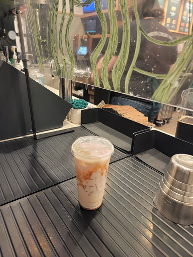 Very slow service, had to wait somewhere close 10 minutes for my order, cashier zoned out while I was ordering, seating area is crowded, but not in the sense of a lot of people, in the sense that theres barely any space for the tables and chairs, much less for people. To make matters worse, the drink pickup counter is on top of the seating area, making it uncomfortable for everyone. With the amount of people waiting for orders, the entrance was getting blocked! Very bad layout inside and outside. Worst parking lot Ive ever seen! No space to maneuver vehicles, especially with the drive-in cutting through what little space you have to maneuver and to get back on the road is a nightmare! If you must come to this one, park elsewhere and walk. As a matter of fact, look for another store or come when you know its empty.