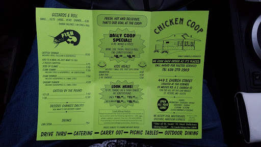 Best Chicken! Made to order. They also have Chicken Tenders.. The Menu on this site is not generated by the owner! There are food items that Google Business place on the menu that The Chicken Coop does not sell! Call for correct price and menu!