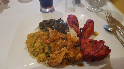 Looked on Yelp for a nearby place to satisfy an early dinner hunger and glad I found this. The Lamb Curry was very good albeit the lamb wasnt as tender as I was hoping but certainly not tough. Somewhat dark atmosphere, big picture windows, water needs to be filtered, sweet young server. All good.