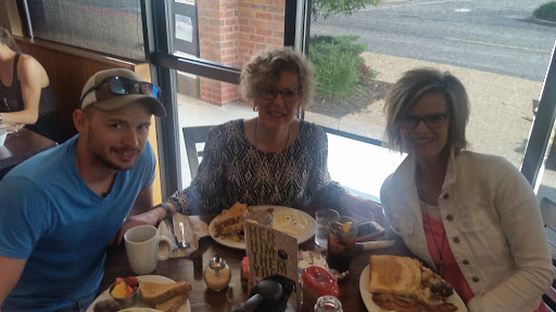 Great, fresh food. And I am ALWAYS amazed at how they get people in and out of that place so quickly, when you get in there and dont feel rushed at all. It is ALWAYS packed for breakfast/brunch/lunch on the weekends, so sometimes you have to wait a few minutes for service (water refills, etc) but it is well worth it. They have an e-club which is fantastic for free meals and coupons too. My kids LOVE the pancakes and I love the Vera Cruz burrito. Coffee is sooo good too. Definetly my favorite place for breakfast in St. Charles area, feels like a local eatery, not a chain.